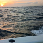 ⑤「エギを入れ直してる」 … 船は流れて常に新しい場所に入って行く。こまめにエギを回収して入れ直すほど新しい場所にエギが落ちる。アタリが無い時、道糸が斜めになったらエギを海面まで上げて入れ直す。まさにこれ!