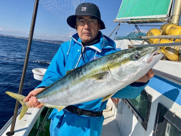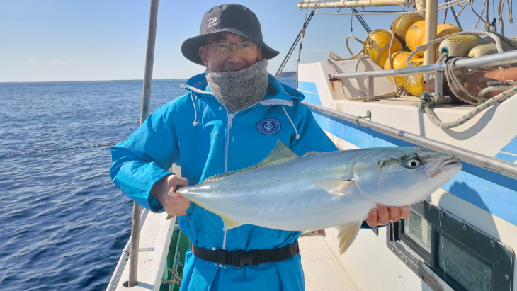 中盤までは各ポイントを探る展開でしたが、後半の剣崎沖でドラマが待っていました!強烈なヒットが連発し、慎重にやり取りして上がってきたのは、なんと84cm・7kgの立派なブリ!複数回のハリス切れもあり、他にもブリが潜んでいそうですね。