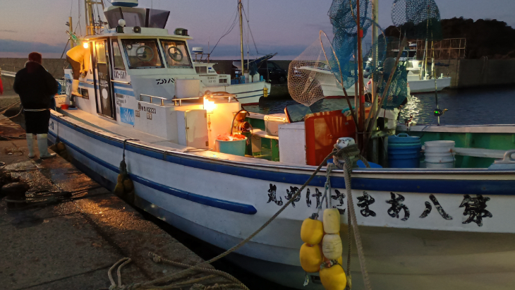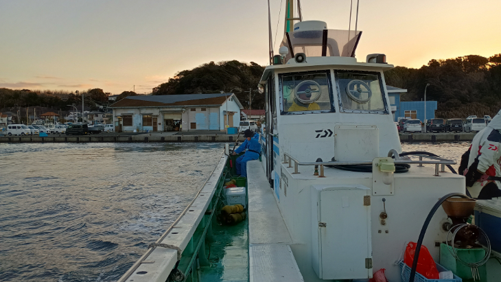 今日は第8あまさけや丸、裕太船長。私はいつもの右舷ミヨシ、Nさん右舷オオドモです。