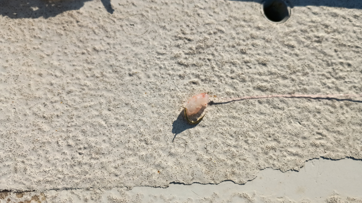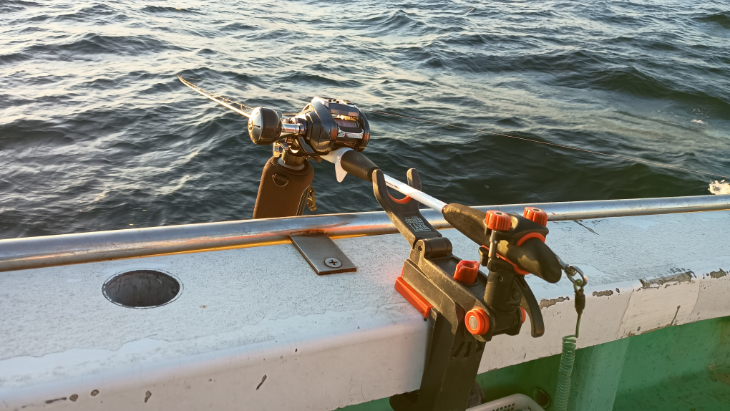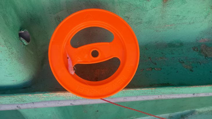 前回などマダイ釣行で風が強く海荒れて、手前祭り頻発し釣りにならなかったので、仕掛け投入リールをAmazonで注文して昨日、届きました。今日は風無く、流水も大丈夫そうなので仕掛けを船に上げても手前祭りしなそうですが、船移動後の投入に使って練習して見ました。付けエサが付いたハリをクッ付けるマグネット(磁石)を付ける位置をチェックしました。
