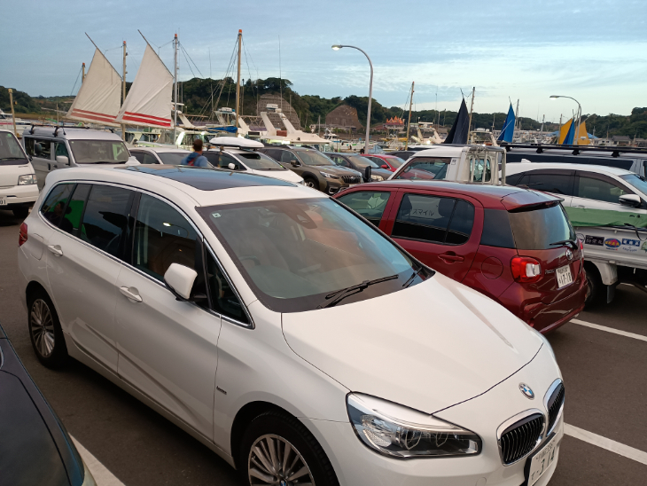 5:04 港に着くも意外と釣り人多く、岸壁から2列目でした...マグロ・カツオのお客さんがわんさか居ました。
