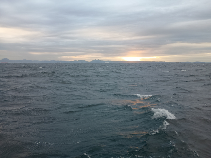 海上は結構な強風で15m/s以上あるのでは、波も1m以上ある感じです。