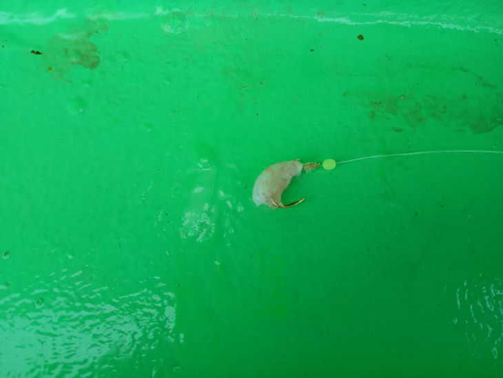 残念、今日唯一のチャンスを逃しましたぁ...回収した仕掛けを見るとクッションゴムにスイベルだけ残ってました。ハリスの結びがスッポ抜けてました😥