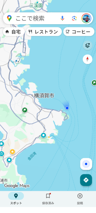 12:11 猿島方向に移動しましたが...釣れず、12:15また走水沖に戻りました。