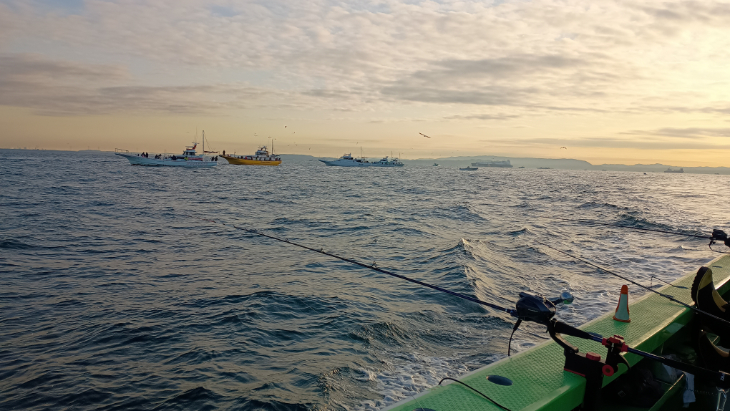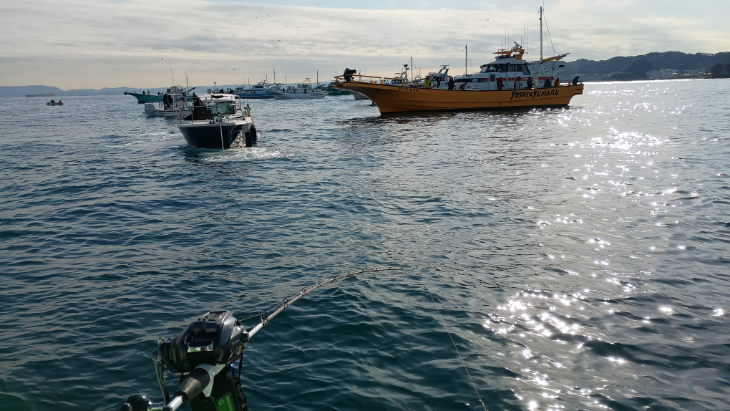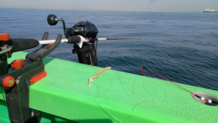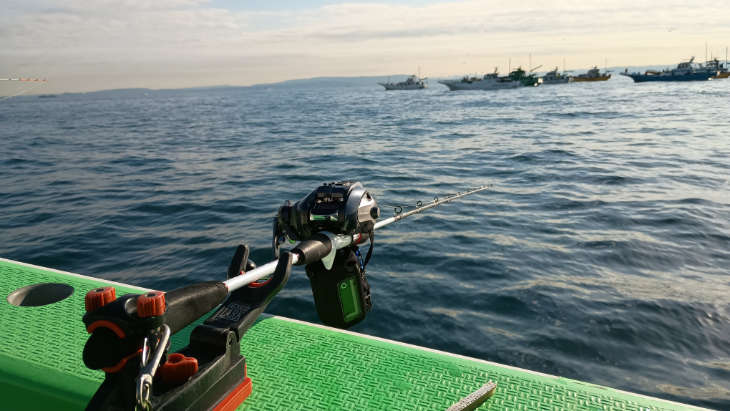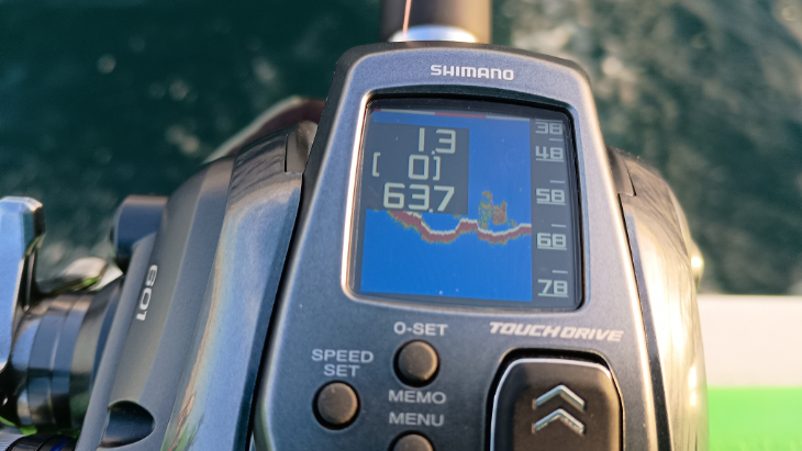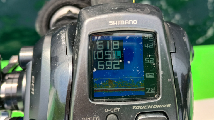 - 頻繁に指示があった船長指示タナに、道糸PEラインを見ながらタナ調整する。