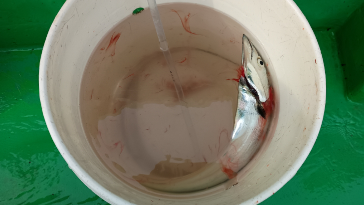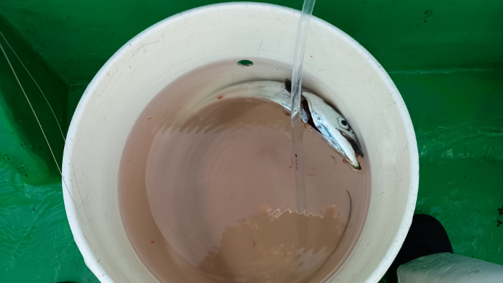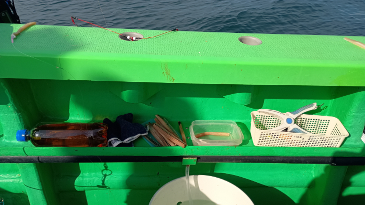 足らなくなったら船尾のクーラーにあるので各自取りに行くようです。