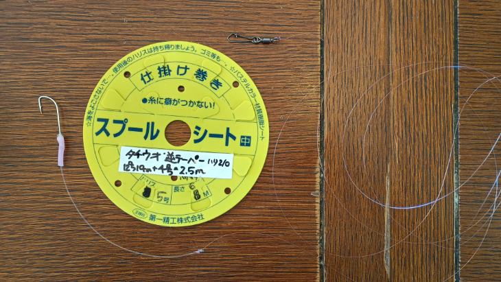 - 船宿推奨の逆テーパー仕掛け2.5mを5セット自作する...呑まれて切られたのは1セットのみ